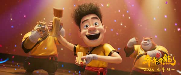 MV还创新融入了别具一格的地域特色小巧思,强哥带头献上了一段天津快板:“夸一夸您这好学业,天天顶呱呱,职位薪水翻着倍,钞票哗啦啦”。歌词中熊二仍惦记着吃到蜂蜜的幸福,还被光头强吐槽“忘不了吃”,贴近生活的歌词编排搭配可爱俏皮的角色互动,让这份新春祝福更加落地,直击人心。多年来,熊强三人组始终在新春佳节与观众共贺团圆,2026年新春,更是即将陪伴观众完整走过十二个生肖年。值此特殊节点,《熊出没》大电影以新作《熊出没·年年有熊》紧扣“过年”这一核心主题,用极具中式奇幻感的视觉呈现,讲述最接地气的暖心故事,为大家传递最浓郁的新春年味。2026大年初一,敬请期待!