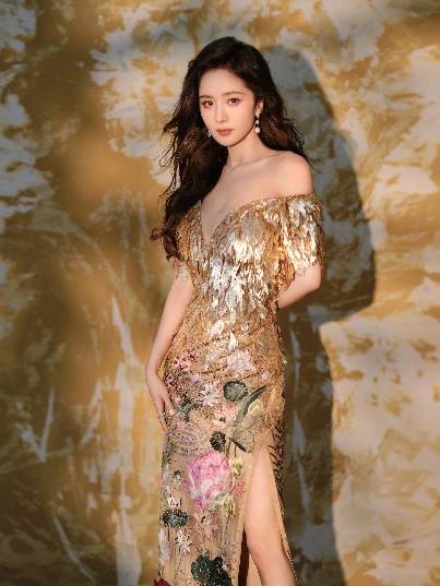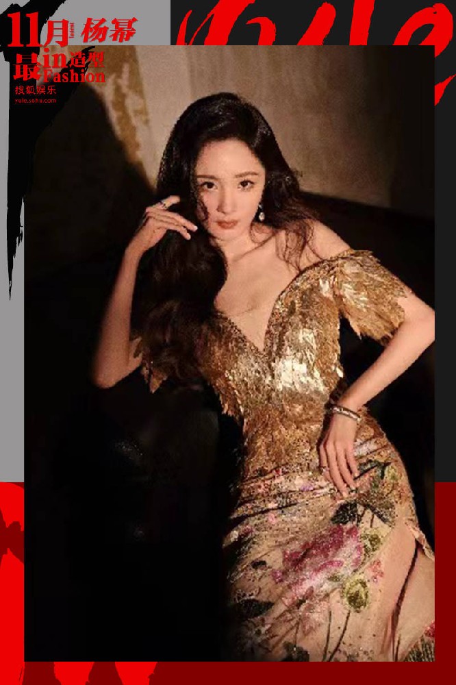 浮光跃金,静影沉璧。杨幂这身造型喧闹又沉静,让人看到中国旗袍的更多可能。通体淡鹅黄打底,上绣荷塘意象,直给的显性传统元素氛围相当浓郁。娇艳的荷花、层层泛起的涟漪…亮片似露水落珠般散落其上,于光影明灭中闪烁,情绪暧昧迟疑。相较于下半身的炫丽,旗袍上半身的改造,出手就是抓人眼球的大手笔。柔和的弧形小V领+密缝的亮片羽毛,华丽的鎏金质感扑面而来,渲染出纸醉金迷的气息。杨幂或倚墙而立、或窝在沙发,只需一个略显落寞的眼神和慵懒的大卷发,便可轻松拿捏中式的孤高矜持,现代的摩登热烈!