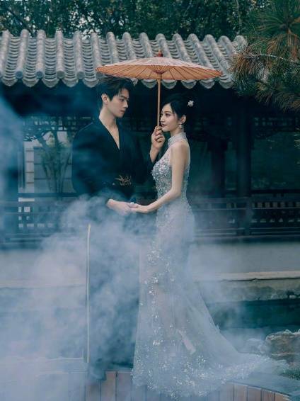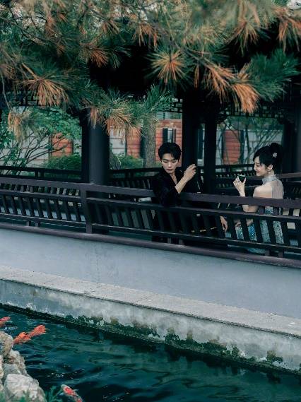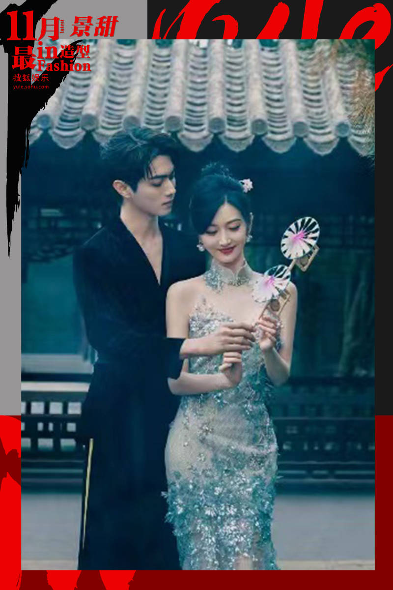 CP粉狂喜,景甜和许凯的新中式造型妥妥的婚纱照范本!烟雾缭绕的中式园林,亭台楼阁处处透露着雅致,景甜置身其中,身穿抹胸透视旗袍,一双纤细美腿藏在薄纱间,性感而含蓄,裙面大面积的立体刺绣华丽精致,错落的花枝波光粼粼,静谧又梦幻。裙摆揉入西方鱼尾元素,仙气十足,景甜化身一条高贵的人鱼,充满甜美的小女人气息。轻揽佳人入怀,许凯选择一身黑丝绒作配。厚重质感的外套高贵沉稳,前以金竹束腰,后以青松为背,V领打破沉闷却点到为止,荷尔蒙散发隐忍克制。二人促膝,对弈品茗,清冷的氛围里忽就有了烟火气,这让人上头的“so sweet”真·神仙眷侣!