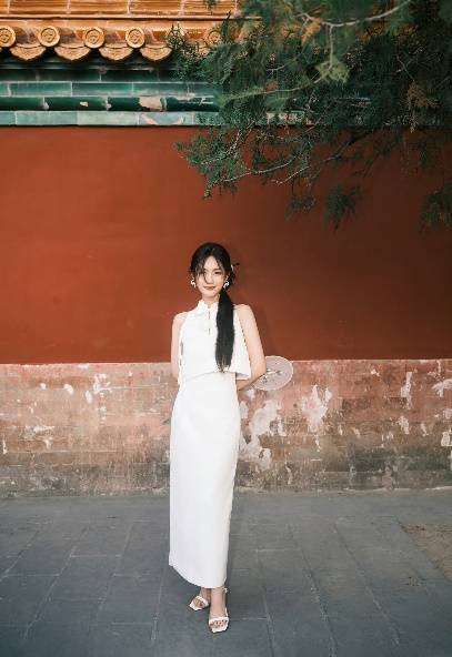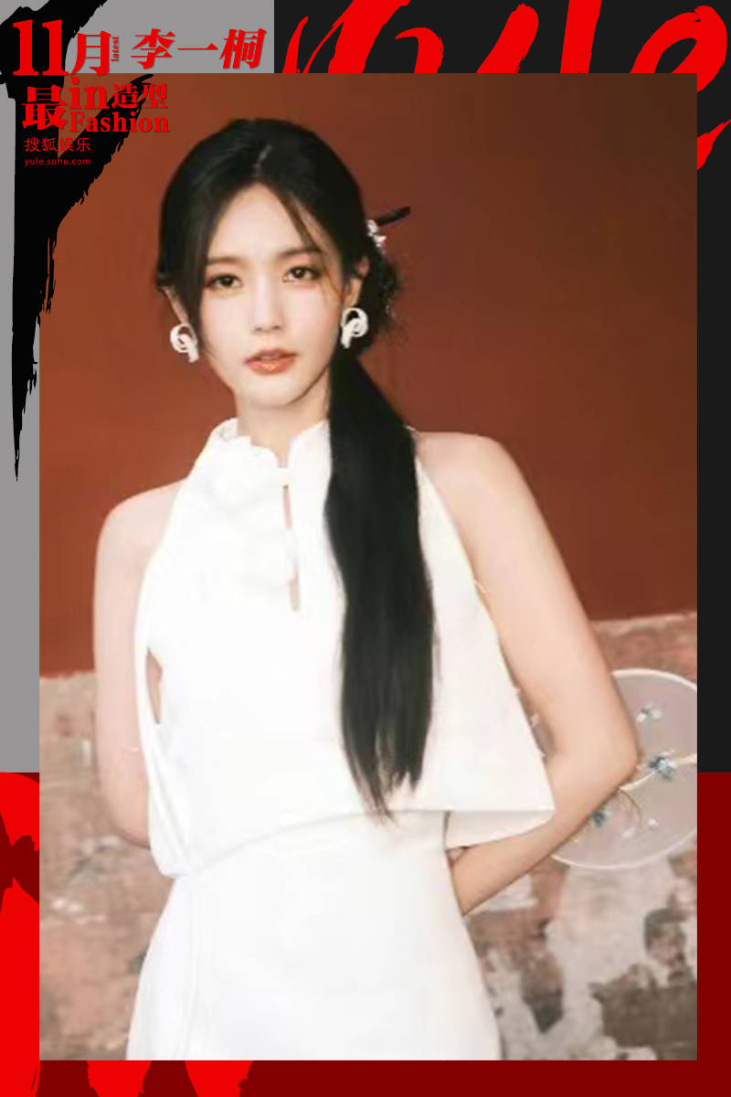 身着白玫瑰旗袍的李一桐,中式盘发也太温柔了!黑色浓密的长发披在一侧,如瀑布般一泻而下,宛若从画中走出来的江南女子。对开襟的无袖小立领白衣,有点像挂脖的样式,衬托着她的双肩愈发纤细。一大一小的花朵盘扣,减龄又添趣,长长的花枝向下延伸,像流苏一样灵动,与绸带样式的卷曲耳饰相映成趣。宽松轻盈的下摆随步伐左右,造成腰肢轻摆的错觉,风韵秀逸。手执绫绢小团扇,她是年方及笄的大家闺秀,可亲可近却不可及。