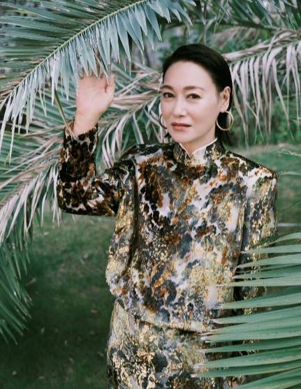 惠英红几套新中式穿搭几乎成了明星范本,充满力量感的东方风骨,将中式穿衣的大气发挥到了极致,怪不得能受邀开场!这身旗袍套装剪裁传统,以大笔触的方式落墨,铺满中国传统色彩,气势相当恢弘。青绿色块相融,似千里山川起伏错落,白色与金色偶尔游走,仿佛环绕着大川烟雾与河流。惠英红短发背梳,眼神刚毅,霸气的pose自带高级感,气场直接拉满!