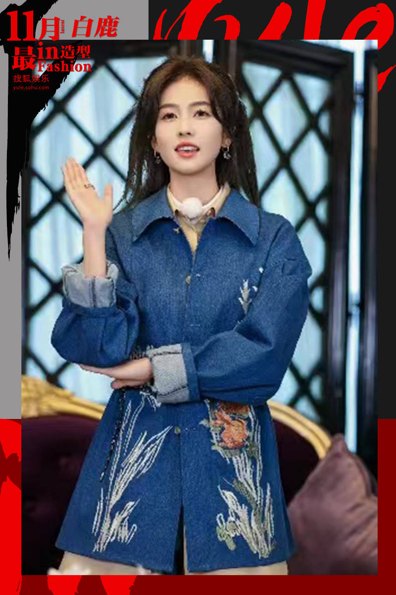 牛仔面料结合新中式能有多亮眼,白鹿这身元气少女装给出了最佳答案。鹅黄色长衣打底,新中式氛围就位,外搭肌理细腻的艳蓝色牛仔外套,明暗色彩碰撞,给人开阔的感觉。外套剪裁精致,收腰的版型非常减龄,上绣大气的花卉,丝线穿梭交织,银光流转,分外精致。为了强调混搭感,她选择将金属链点缀腰间,不破坏整体风格的同时,轻松制造视觉焦点。下配一双泥浆色厚底骑士靴,直接变身腿精,甜辣休闲。