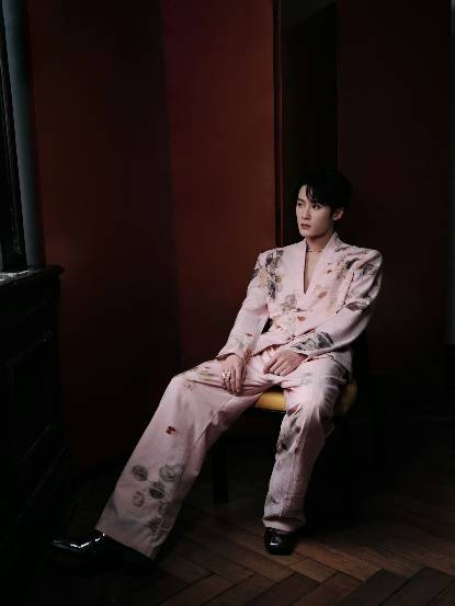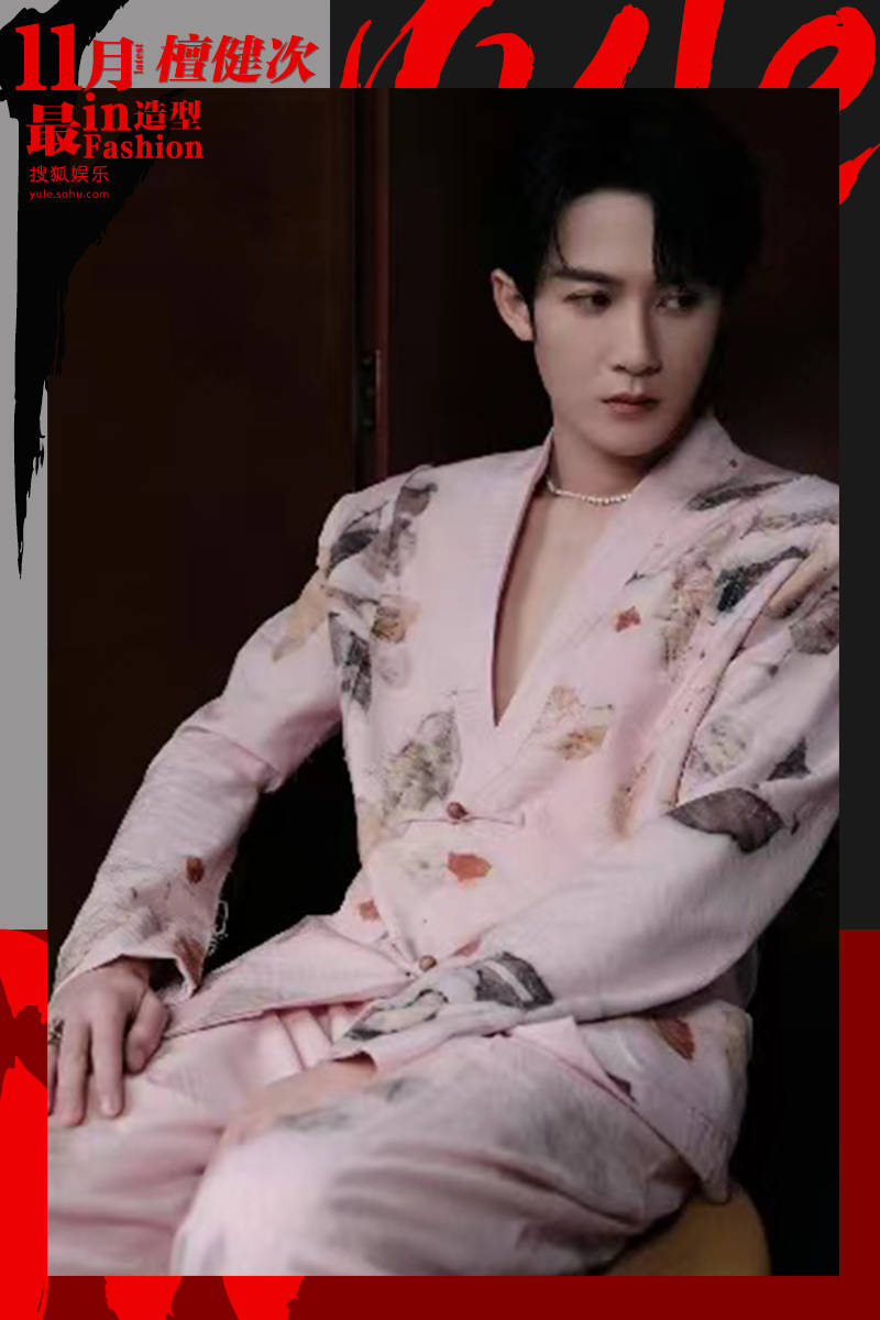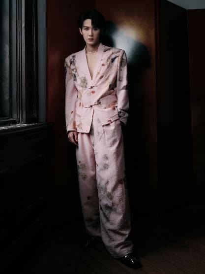 檀健次冷峻的脸庞搭配上真空深V,本以为他准备将性感拉满,没想到木质盘扣的中式西装杀入氛围,他走起了低调禁欲系的路线,细品之下满满内涵。廓感挺立的西装染上桃花的色彩,儒雅不失反差,自带褶皱肌理的丝绸,采用毛边做旧的工艺,反着独特光泽,充满时光的印记,彰显着他细腻平静的内心。上面不规则的植物拓染,如枯叶随风落在衣袖,细节真实有质感,打造出水墨画的效果,像是大自然恣意抒发的灵感,有着东方美学天人合一的禅意,让人心旷神怡。