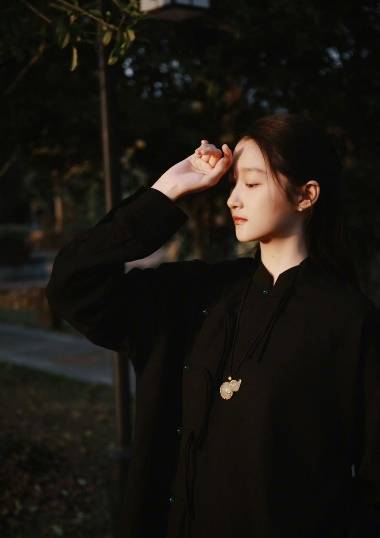 夕阳余晖罩着青砖灰瓦,关晓彤着黑色长裙静静伫立,画面细腻得好像能把人吸进去。古色古香的黑裙满是东方韵味,琵琶襟的设计强调修长的腰身,每个盘扣都以小巧玲珑的玉石点缀,有种古朴清透之美。全黑look下,关晓彤胸前的镶葫芦吊坠成为点睛之笔,传递了古老的祝福和寓意。简单大方的半披发型,衬托着她的民国初恋脸更是天然去雕饰,满满书卷气。面对镜头,她双眸凝视,温柔又坚定,释放出一种时光凝滞的隔世感,恍惚间不知是谁的年少惊梦。