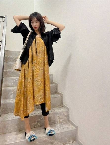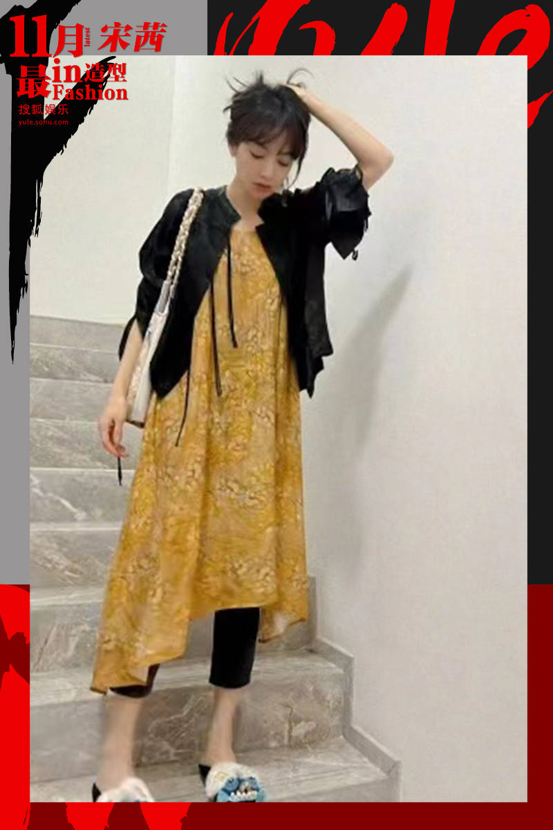 宋茜这身新中式穿搭太适合日常了!相较于新式旗袍,这身设计虽然平淡简单,却很见审美功底。丝质的黑色外套软塌随性,在光线下犹如流动的墨水,每一寸都充满了生命力,配以流苏盘扣,既增加了层次感,又灵动活泼。大面积鹅黄打底裙,上做淡淡的暗纹提花,打破单调却不扎眼凌乱。宽松的版式没有刻意强调身材曲线,反而显得她飘逸舒展,更有生活气息。总体来看,这身穿搭用了经典的玄黄配色,沉稳大气,风格浓郁。一双毛绒绒的醒狮布鞋,宋茜可爱又英气,在新中式穿搭领域,她轻松做到了四两拨千斤!